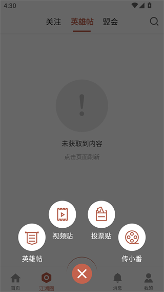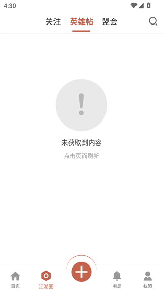 2、点击下方江湖圈,可以看到其他网友发布的帖子,自己要可以在这里发帖;