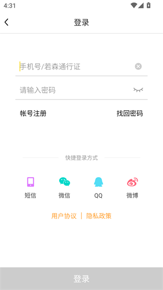 4、发帖需要登录账号,点击之后跳转到登录界面,支持微信、QQ等多个平台一键登录。