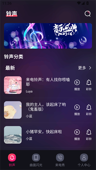 2、首页里可以看到最新的铃声分类以及热门的铃声内容;