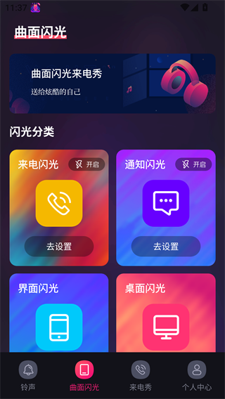 5g手机铃声app简直太实用啦!它能给大伙带来超丰富的手机铃声资源,让你随心挑选设置喜欢的铃声。而且它还有炫酷的曲面闪光功能呢,像截断样式闪光、动感唿吸灯闪光样式等多种样式任你选,适合各种场景。软件里还有来电秀动态视频、壁纸,操作简便,能快速设置,轻松制作专属铃声。