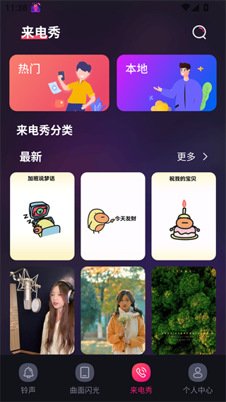 5、集来电铃声、曲面闪光、来电秀、视频去水印等,非常的丰富;