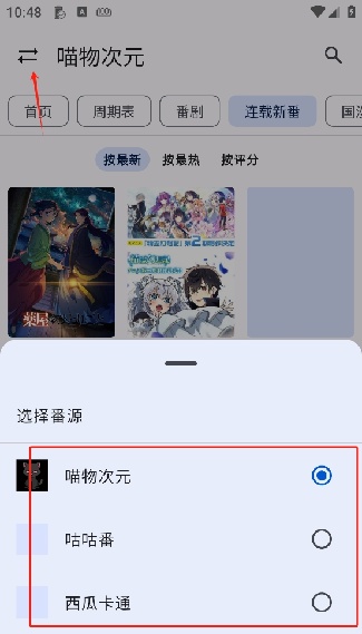 7. 要是觉得现有内容不够丰富或者不合心意,可点击左上角的杠杠,更换其他番剧观看。