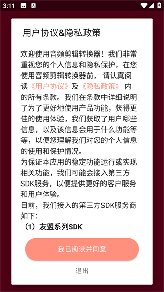 1、下载安装软件并打开,点击我已阅读并同意,进入软件主界面;