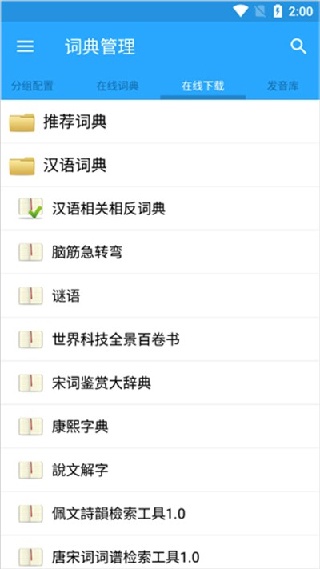 3. 软件进行实用词典推荐,方便快速选好后本地下载的功能。