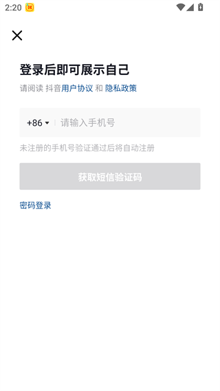 2、点击右下角我的,跳转到登录界面,输入手机号然后获取验证码即可登录;