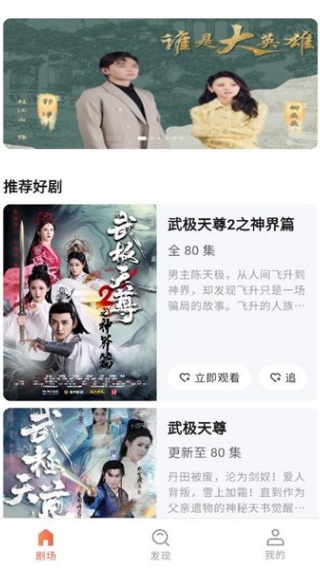 2、对剧目进行分类整理,剧场板块聚焦已上线的完整剧目,发现板块则可能包含题材分类、新剧预告等内容。