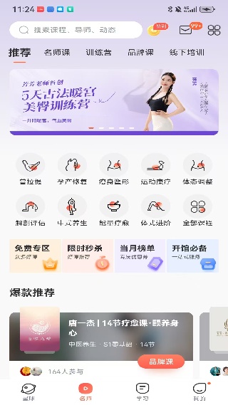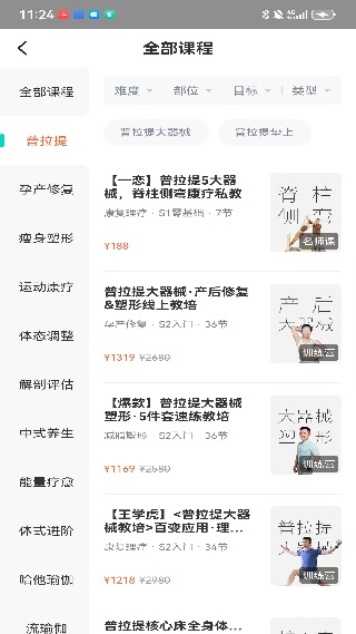 1.瑜伽课程资源广范围,任意查找瑜伽即可;