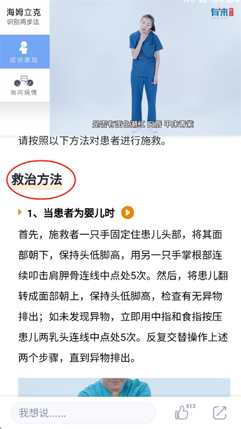 3、以海姆立克法为例,先学习症状识别,判断患者是否气道异物堵塞。