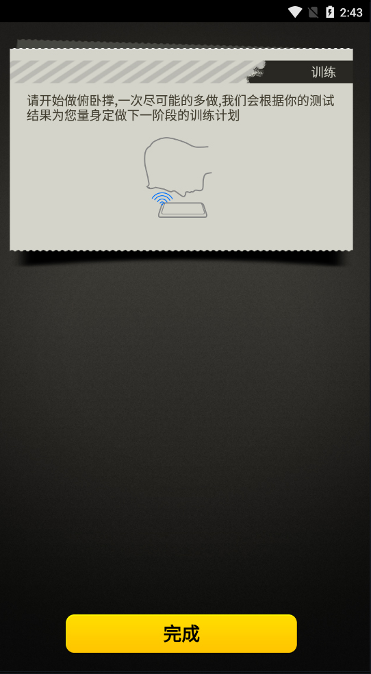 1、打开软件,先进行俯卧撑测试,尽可能多做,以便定制训练计划。
