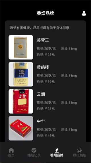 4. 点击页面下方的‘香烟品牌’,即可看到不同香烟的详细介绍。
