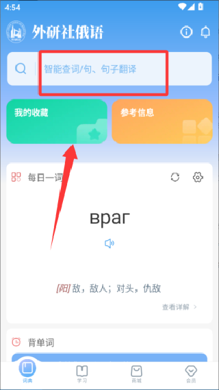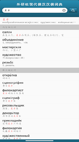 1. 查词操作:打开软件后,可在搜索框输入汉语或俄语查单词。