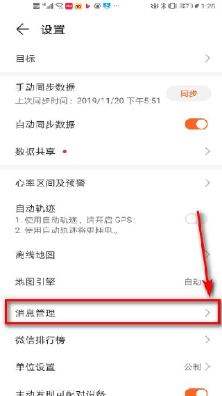 3. 下拉页面,找到“消息管理”选项。