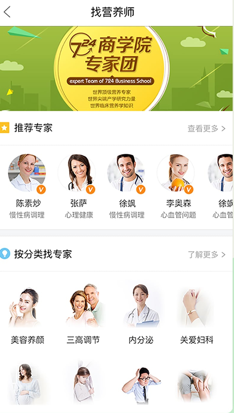 4、进入 “找营养师” 页面,可按推荐或分类,选择营养师咨询健康问题。