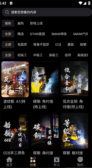 2.对焊接课程进行了详细的分类,用户可以根据自己的技术水平和学习需求,选择合适的课程进行学习,提高学习效率;