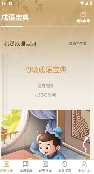 2. 在首页即可看到‘成语宝典’功能,可以根据自身水平选择不同的教材使用;