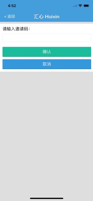 1、打开汇心软件,输入邀请码,点击确认进入。