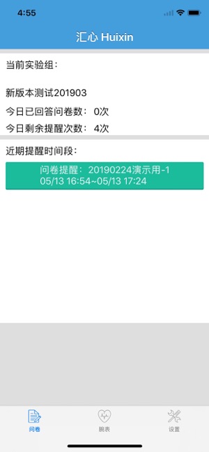 2、进入后,可查看当前实验组、今日问卷回答数等信息。