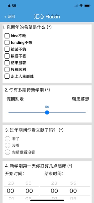 3、点击问卷,回答新年希望、期待新学期等问题。