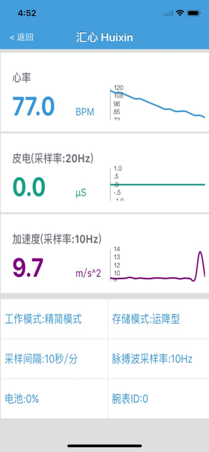 4、还能查看心率、皮电、加速度等腕表监测数据。