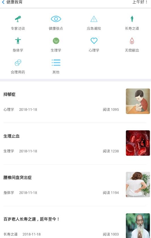 3、点击健康教育,可查看专家访谈、健康视点等健康相关内容。