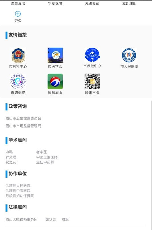 4、还能查看友情链接、政策咨询、学术顾问等信息。