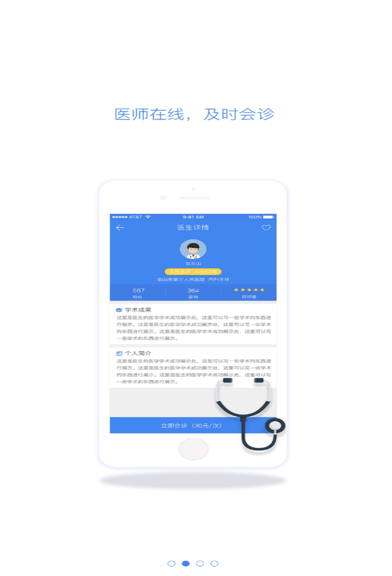 医师会诊功能,使用该款app,名家医师可远程为患者会诊;
