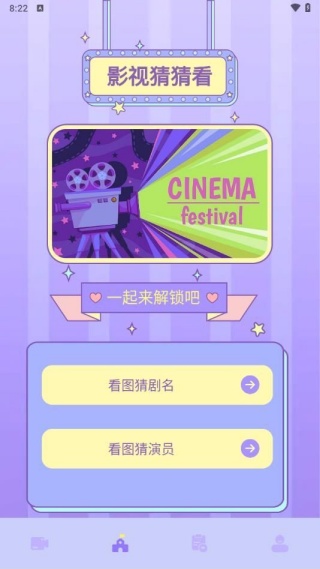 1、下载安装app,进入首页,可以参与影视猜猜猜的游戏哦;