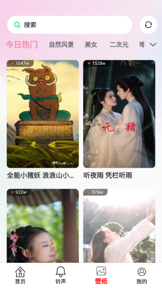 3、高清壁纸:部分app还提供海量高清壁纸资源,用户可以同时设置个性化的来电铃声和来电壁纸。