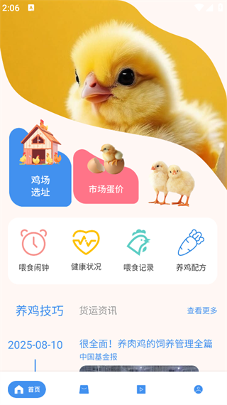 养鸡宝是专门为刚入行的养鸡新手打造的教学指导软件哦。它能凭借专业知识和实用工具,助力新手养殖户把养鸡事业顺顺利利地开展起来。这个平台给出了超全面的养鸡技巧,新手养殖户利用它来学习,就能提前熟悉各种实用的养鸡招儿和办法,从而为养鸡工作做好充足准备啦。