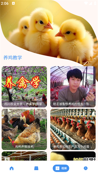 4. 点击页面下方的‘视频’,即可看到养鸡教学。