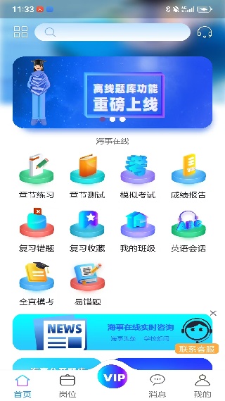 海事在线app是给船员量身定制的备考神器。它有章节练习、测试、模拟考、复习收藏以及英语会话等学习板块,能全方位助力船员备考。这里题库超丰富,边学知识边答题测试,能轻松找出知识短板,据此定制学习计划,针对薄弱点专项练习,快速精准记知识点。此外,app 还有全面的海事头条新闻,分新闻、科普、喜讯等栏目,方便分类看新闻,及时掌握圈内最新动态。