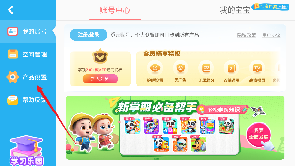3. 进入账号中心页面,点击左边菜单栏“产品设置”选项。