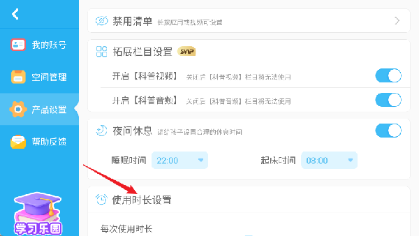 4. 找到使用时长设置列表,在此列表中,可设置每次使用时长与休息时长。
