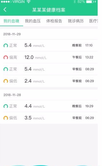 2、为患者建立健康档案,体检报告、就诊病历、血压、血糖等数据都能在线记录;