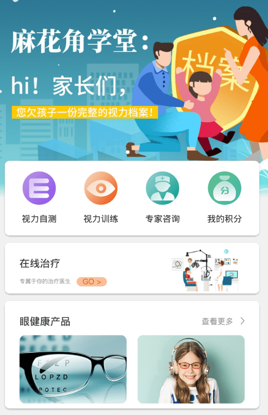 4、浏览眼健康产品,获取视力治疗福利,为孩子建立完整视力档案。
