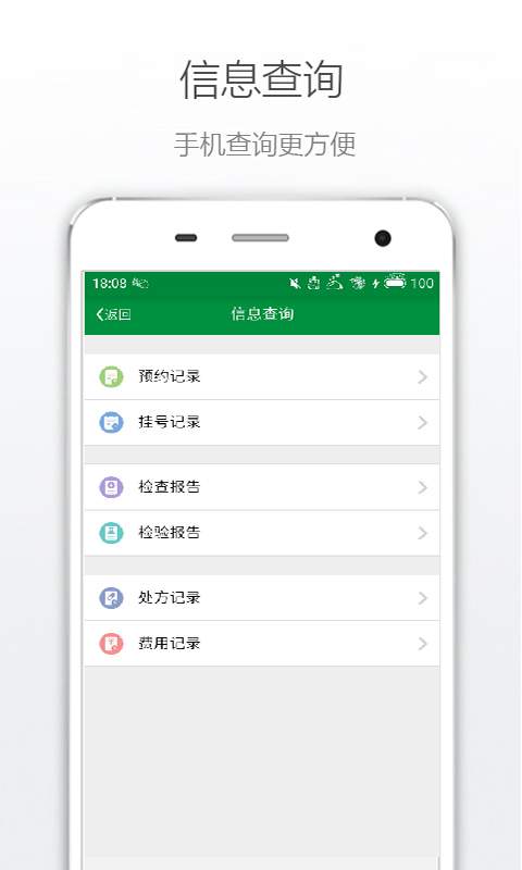 信息查询,可以通过客户端查看检验检查报告、预约挂号记录;
