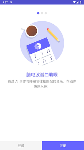 1、注册登录后,可使用脑电波谱助眠功能,创作匹配音乐帮你快速入睡。