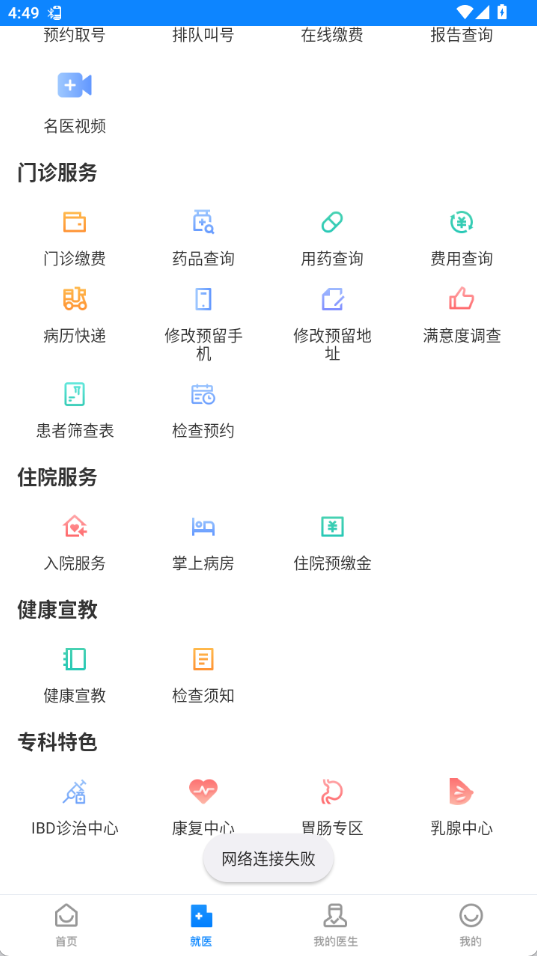 4、查看门诊、住院服务及健康宣教,了解专科特色,便捷管理就医流程。