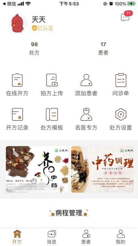 4、借助处方模板、名医专方高效开方,也能进行病程管理和中药调理。