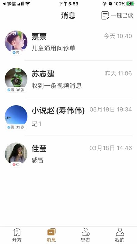 2、可查看患者消息,支持一键已读,方便及时处理问诊沟通。