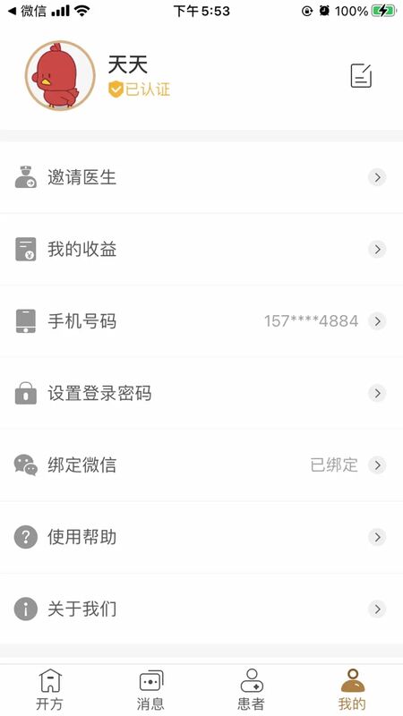 3、管理收益、设置密码、绑定微信,还能邀请医生和查看使用帮助。