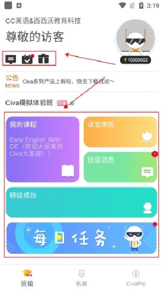 1.于本站完成civa机器人学生版下载并进入的用户,要先登录账号,方可开启功能使用,在【班级】界面的右上角找到【头像】,然后点击进入;