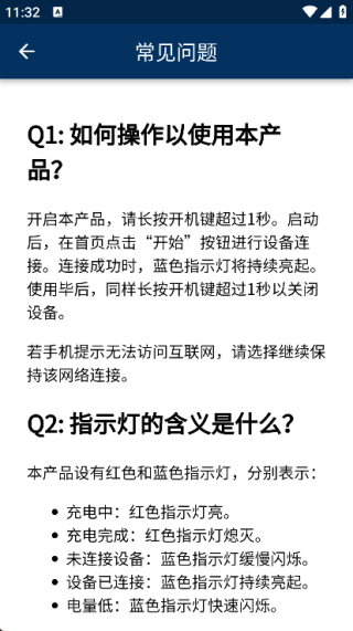 4. 在主页面点击‘?’图标,即可看到常见问题。