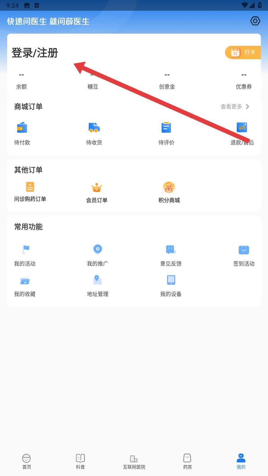 3、进入药房,进行购药咨询,查看商城订单和其他订单,管理地址和设备。