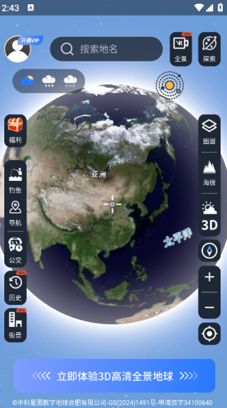 1.提供了高分辨率的3D卫星地图,用户可以通过简单的操作,放大、缩小和旋转地图,查看地球表面的详细情况;