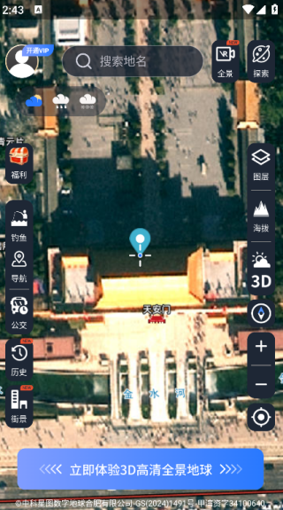 2. 内置的3D卫星地图以逼真的效果呈现地球表面的细节,不仅为地理测绘和城市规划提供了有力支持,也为出行提供参考;