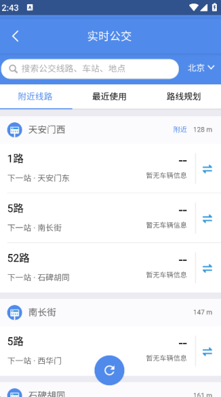 4. 点击页面左侧的‘公交’,即可看到附近的公交信息。