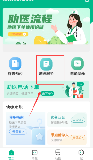 4、查看助医流程,使用快捷功能,享受筛查预约、切医服务等助医服务。