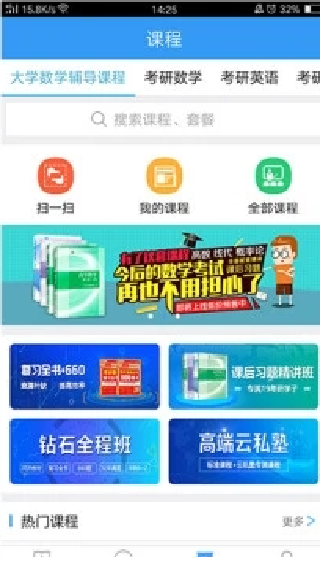 大学数学是一款针对大学生的教育软件,是大学数学、四六级考研的专业学习平台。这里有大学数学、专业课及英语题库,可随时做题练习,还能即时浏览更多复习资料,轻松掌握课程内容。能快速发现课程,课程会逐题精讲,助你知晓题目数量。浏览帖子可获取更多内容,及时购课学习解题思路,解决疑惑。还有经典课程全程跟踪讲解,搜索课程和套餐精准又随意。