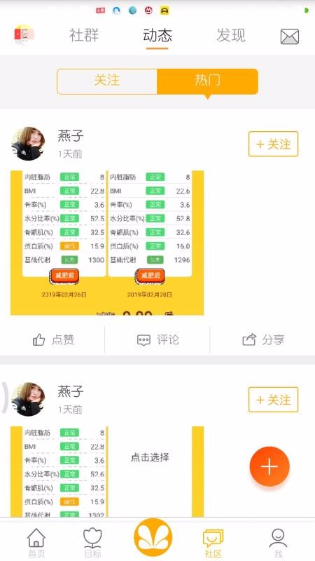 3、浏览动态,查看热门内容,可点赞、评论、分享,关注用户。